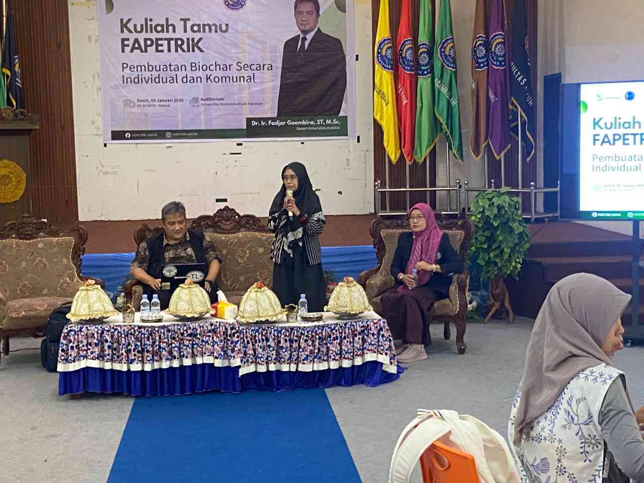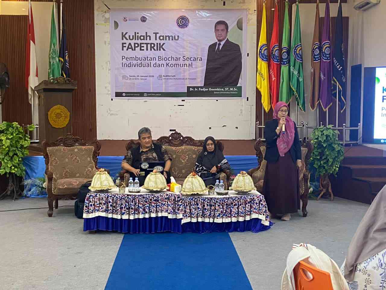 Kuliah tamu diawali dengan sambutan Dekan Fakultas Pertanian, Peternakan, dan Perikanan UMPAR, Dr. Sukmawati, S.P., M.P. Dalam sambutannya, ia menyampaikan apresiasi atas terselenggaranya kegiatan ini dan menegaskan pentingnya penguatan wawasan mahasiswa terhadap teknologi ramah lingkungan. Menurutnya, biochar merupakan salah satu inovasi yang berpotensi besar dalam mendukung pertanian berkelanjutan serta pengelolaan sumber daya alam secara bijak.