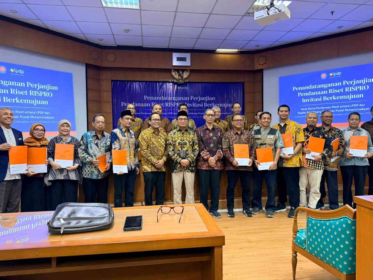Sementara itu, Ketua PP Muhammadiyah Prof. Muhadjir Effendy, M.AP. menyampaikan rasa syukur atas kolaborasi Muhammadiyah dengan LPDP. Ia menekankan pentingnya jejaring (networking) dalam pengembangan riset, mengingat riset dengan dukungan dana besar berpotensi menghasilkan dampak yang luas. Prof. Muhadjir juga menyoroti perhatian Presiden terhadap penguatan riset di Indonesia serta menegaskan pentingnya regenerasi peneliti di Perguruan Tinggi Muhammadiyah dan 'Aisyiyah (PTMA) agar ekosistem riset terus tumbuh dan berkelanjutan.